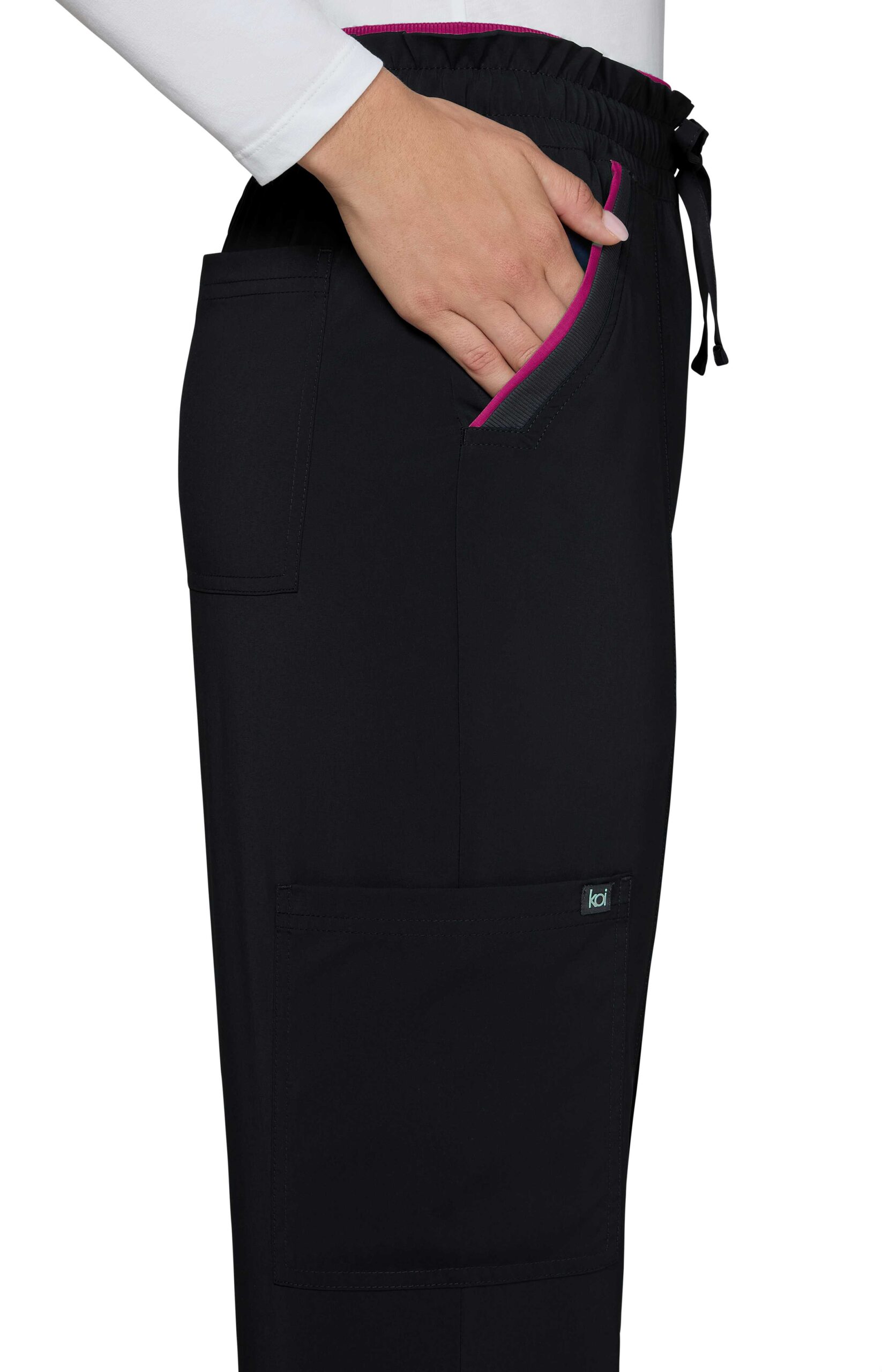 • Rugalmas, megkötős derék kontraszt rib részlettel